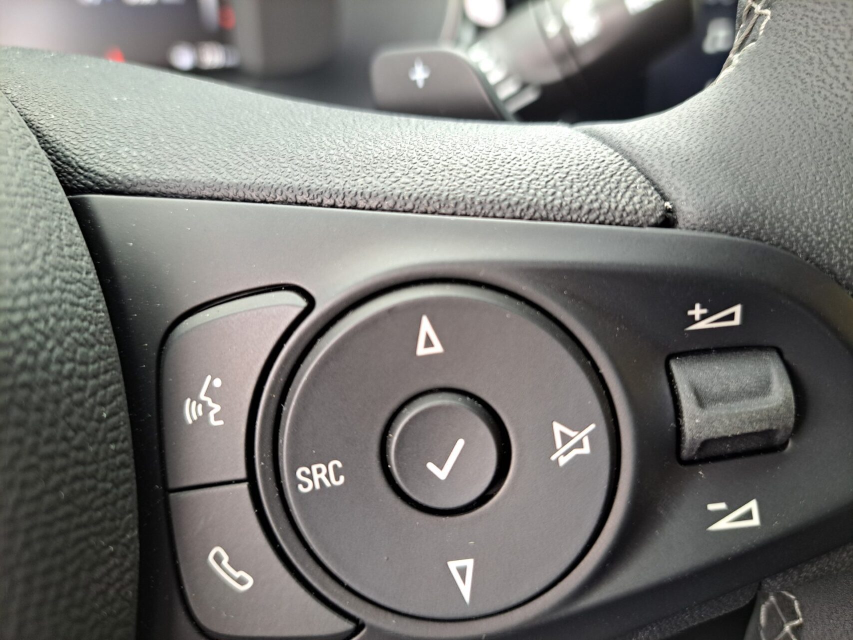 Kierownica pokryta skórą ścięta u dołu, perforowana