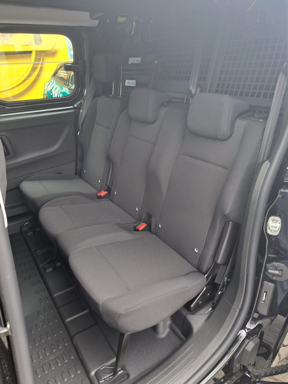 Dzielona, składana kanapa z oparciem i 3 zagłówkami. System Isofix na każdym miejscu”